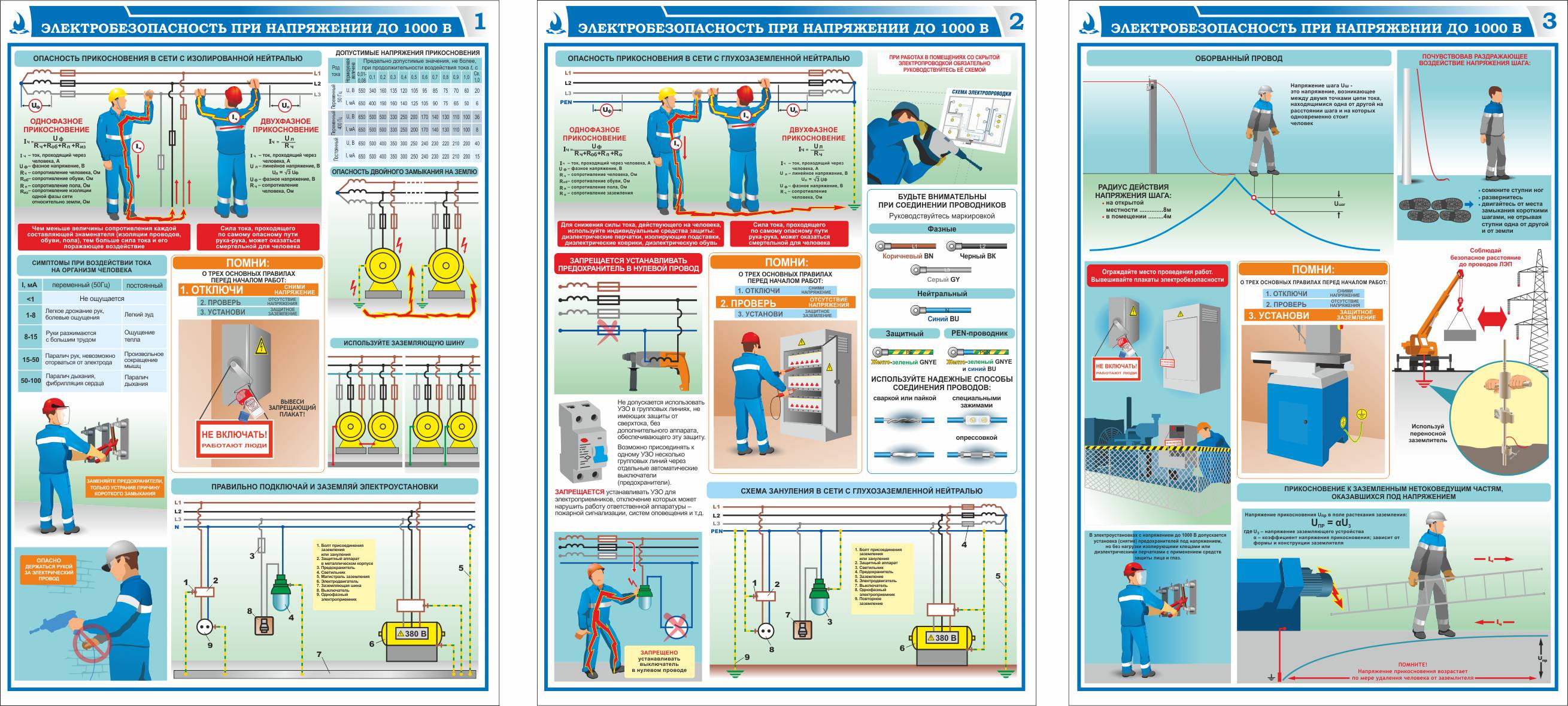 Комплект плакатов Электроустановки напряжением до и выше 1000 В. Порядок и условия безопасного производства работ