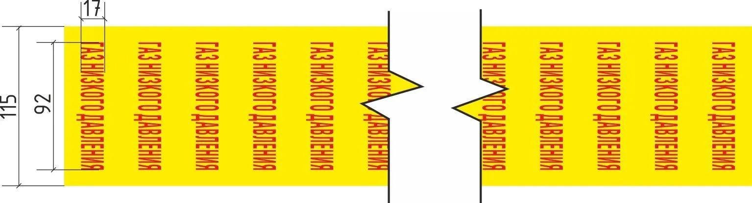 Лента маркировочная Топливный газ, 115 мм х 20 м, 43 мм, цвет фона желтый