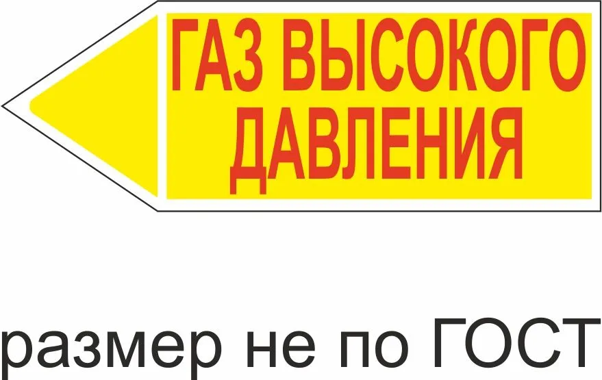 Маркер самоклеящийся Газ низкого давление 74х210 мм, фон желтый, буквы красные, налево