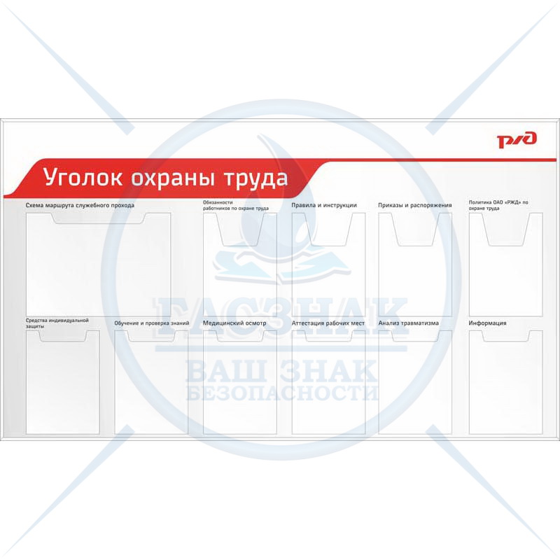 Стенды по охране труда для ОАО РЖД Транспортная безопасность, 8 плоских карманов А4 (Пластик ПВХ 4 мм, алюминиевый профиль; 1150х850)