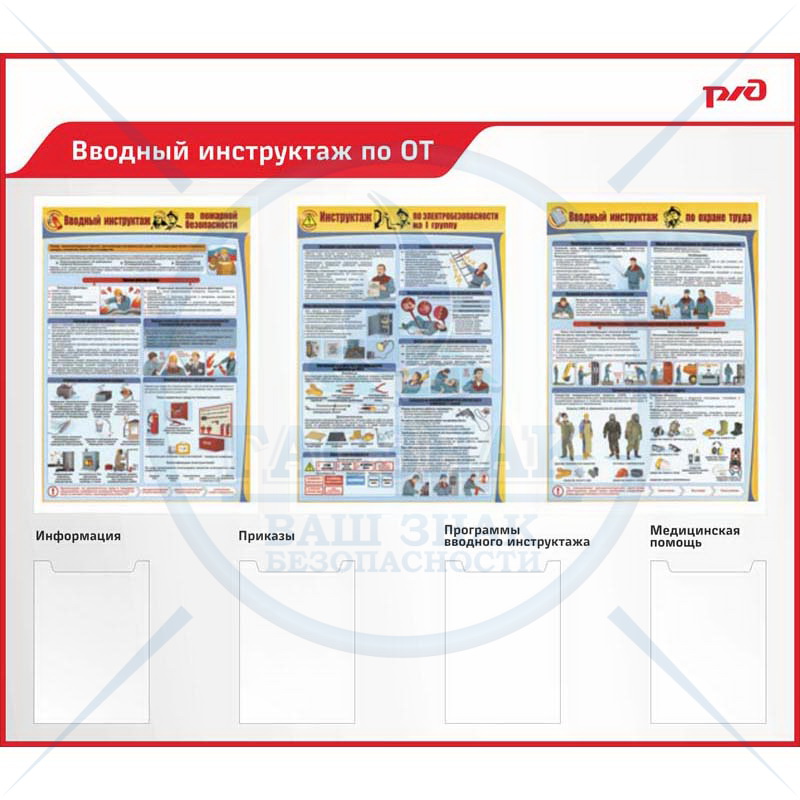 Стенд Информация РЖД, 2 кармана А4 пл., 2 кармана А4 объемн., 2 перекидныхй системы на 6 ячеек (1400х1200; Пластик ПВХ 4 мм, алюминиевый профиль; )