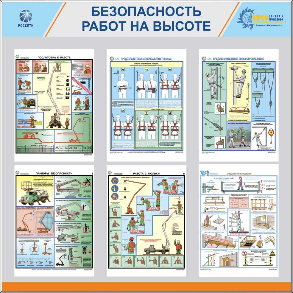 Стенд «Работы на высоте» 6 плакатов А3 (1100х1100; Пластик ПВХ 4 мм, алюминиевый профиль;)