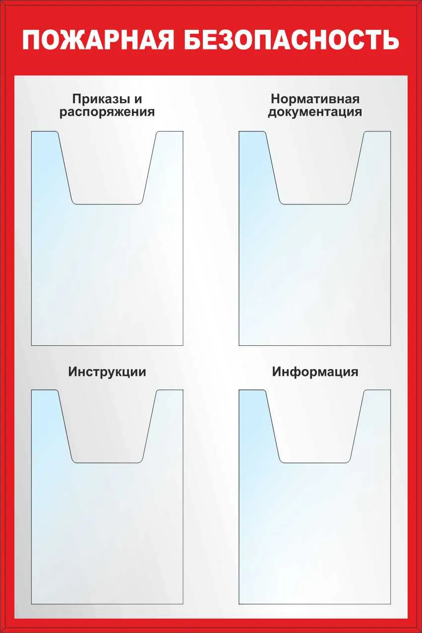 Стенд Пожарная безопасность. Плакаты А2х2шт., логотип, Логотип (1000х1000; Пластик ПВХ 4 мм, пластиковый профиль; Пластиковый)